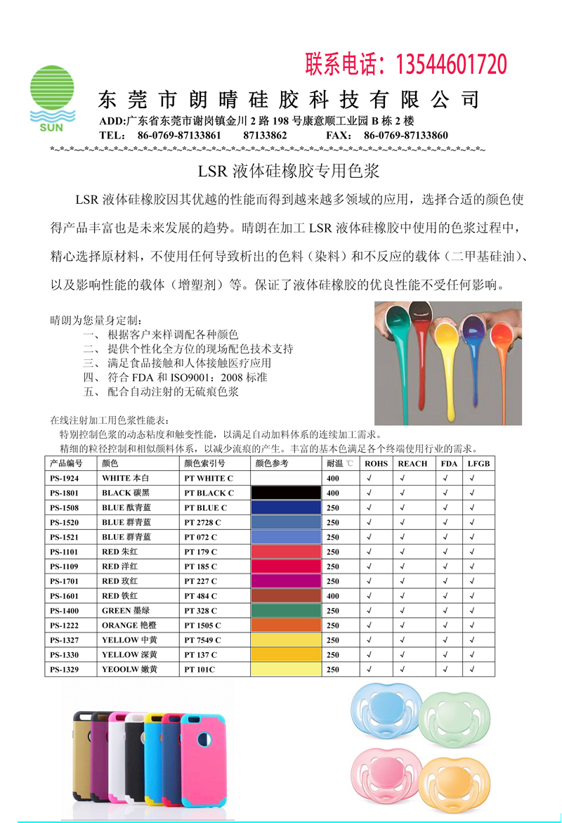 • LSR液体硅橡胶因其优越的性能而得到越来越多领域的应用,选择合适的颜色使得产品丰富也是未来发展的趋势。晴朗在加工 LSR液体硅橡胶中使用的色浆过程中,精心选择原材料,不使用任何...