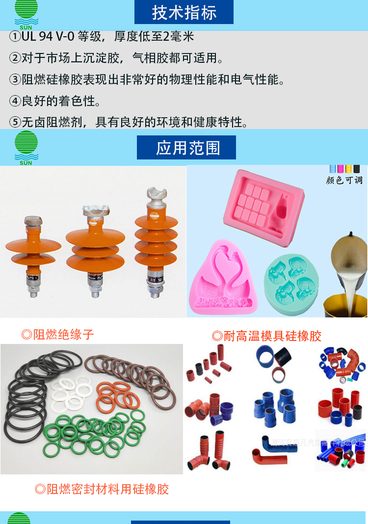 • 硅胶阻燃剂,添加25%可达到UL V-O无卤...