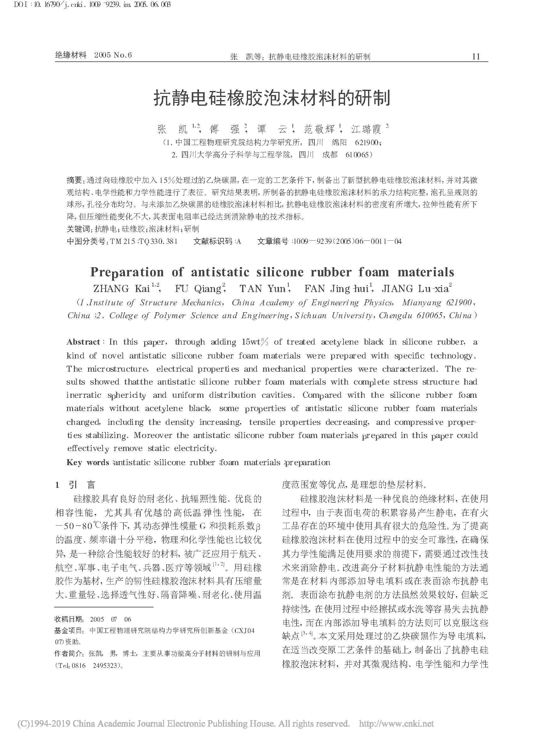 抗静电硅橡胶泡沫材料的研制_张凯